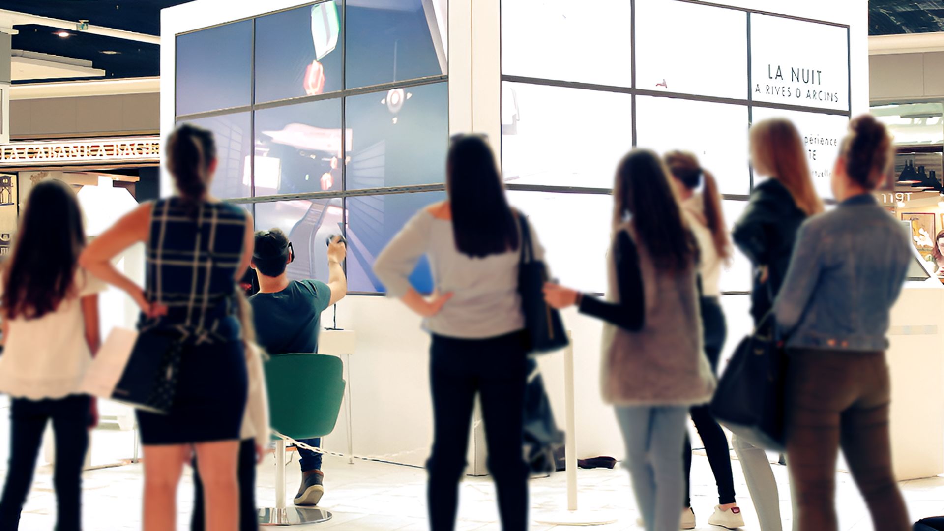 Pour animer la galerie commerciale et favoriser la convivialité, les équipes d’Apperture ont imaginé un jeu en réalité virtuelle avec retransmission en direct sur grand écran.